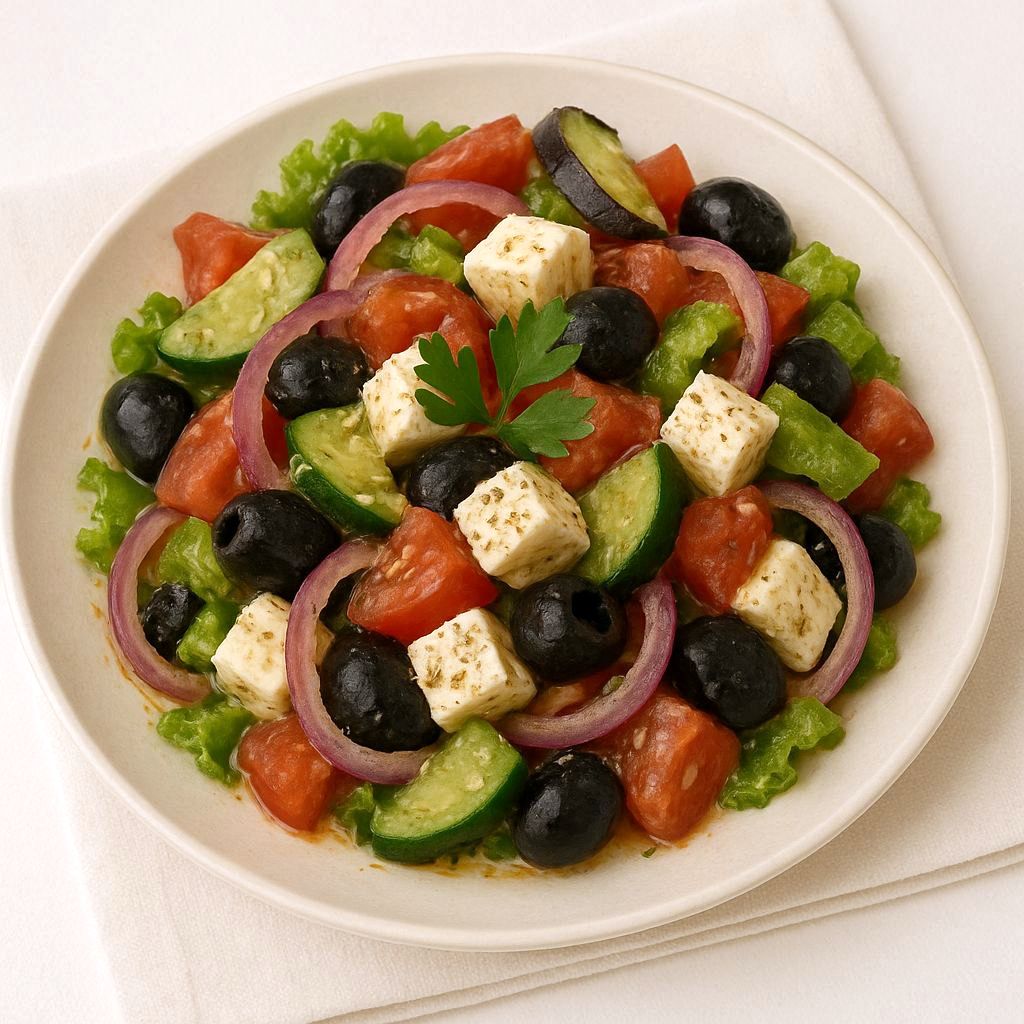 Объединяющая яркость вкусов, сочность свежих овощей и сыра фета.