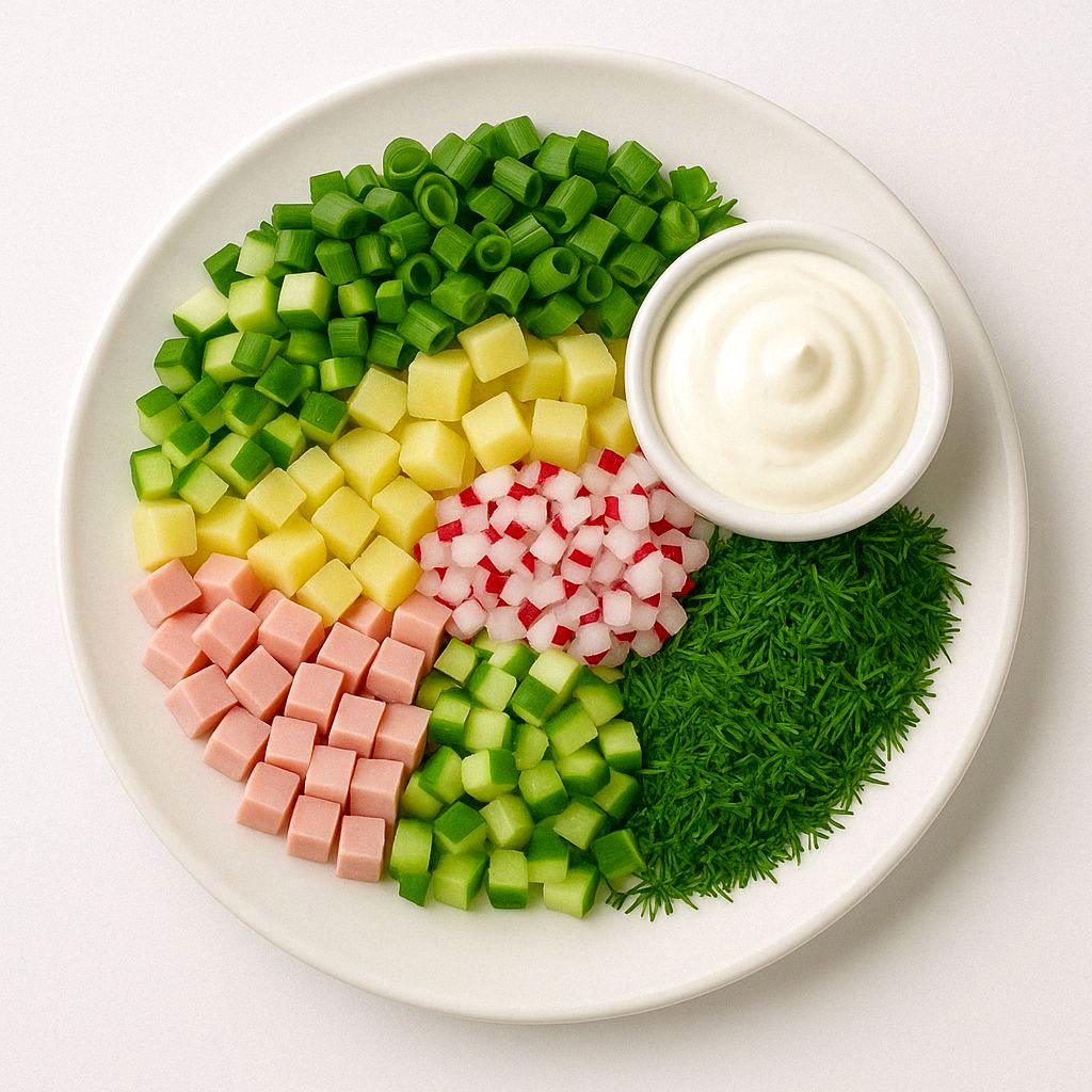 Технология: Овощи нарезают и тушат до мягкости с добавлением специй и масла.